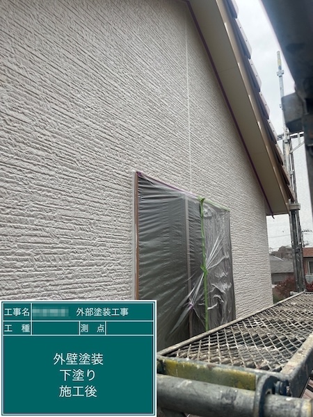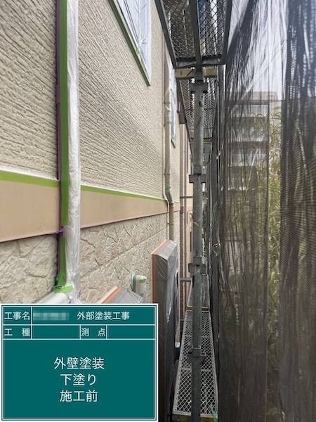 塗装前の養生〜外壁の下塗りを行いました|東京都練馬区
