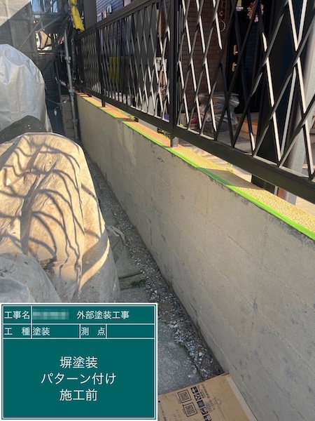 敷地まわりの塀の塗装 パターン付け
