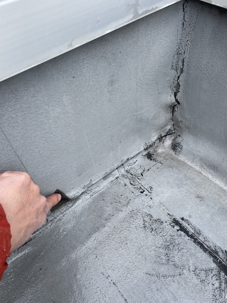 防水シートの捲れや破れはシーリングを充填して接着と密閉を行っています。
