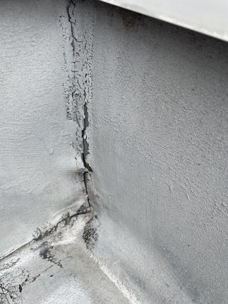 劣化調査では防水シートの捲れや切れているのを確認できました。