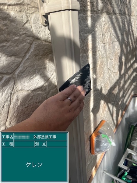 塩ビ製の雨樋なので、しっかりケレンを行なって塗装が付きやすい状態にします。