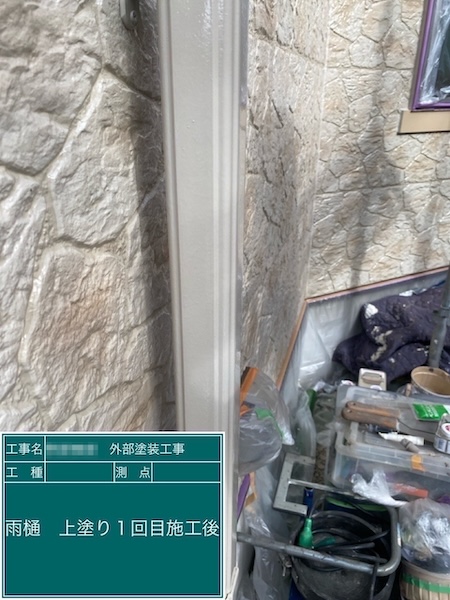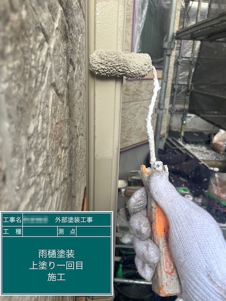 縦樋の下地処理 ケレン〜上塗り1回目〜2回目を行いました|東京都練馬区