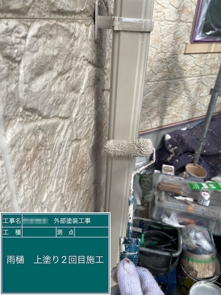 付帯部 縦樋の上塗り 1回目〜2回目