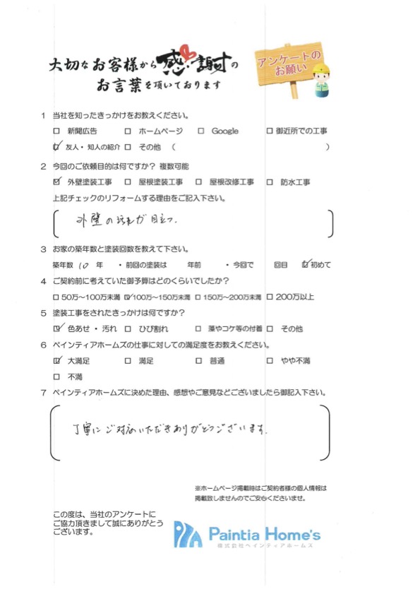 知人の紹介でペインティアホームズさんにお声をかけさせていただきました。