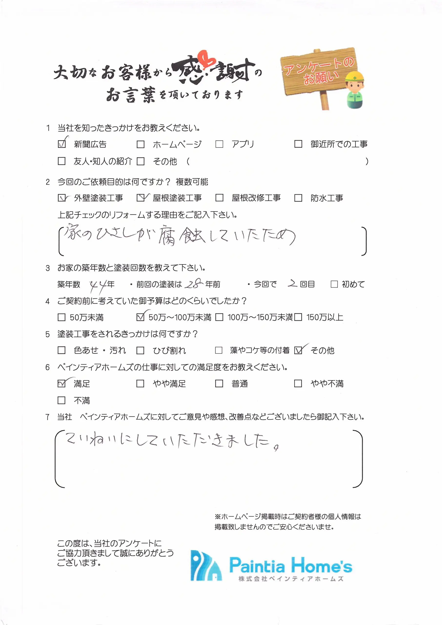 ひさしの腐食などもあり心配でしたが、丁寧に補修してくださり、満足しています。